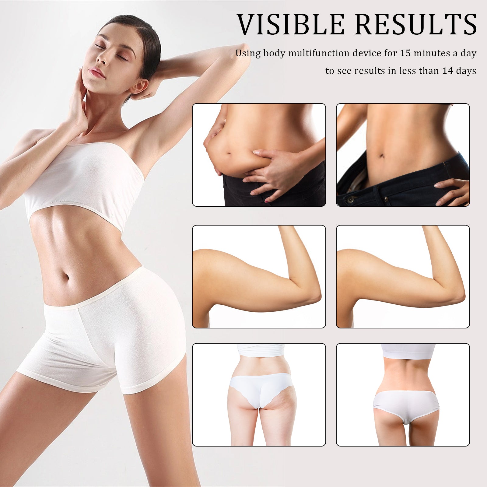 Keine Heilversprechen: Es werden keine medizinisch nachgewiesenen Wirkungen (z. B. Cellulite-Reduktion, Fettabbau, Hautverjüngung) garantiert.