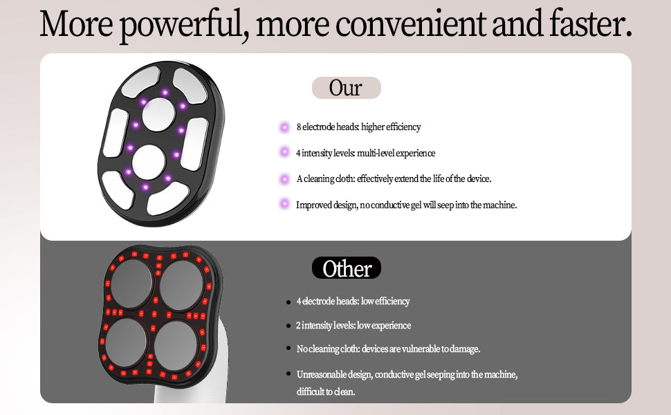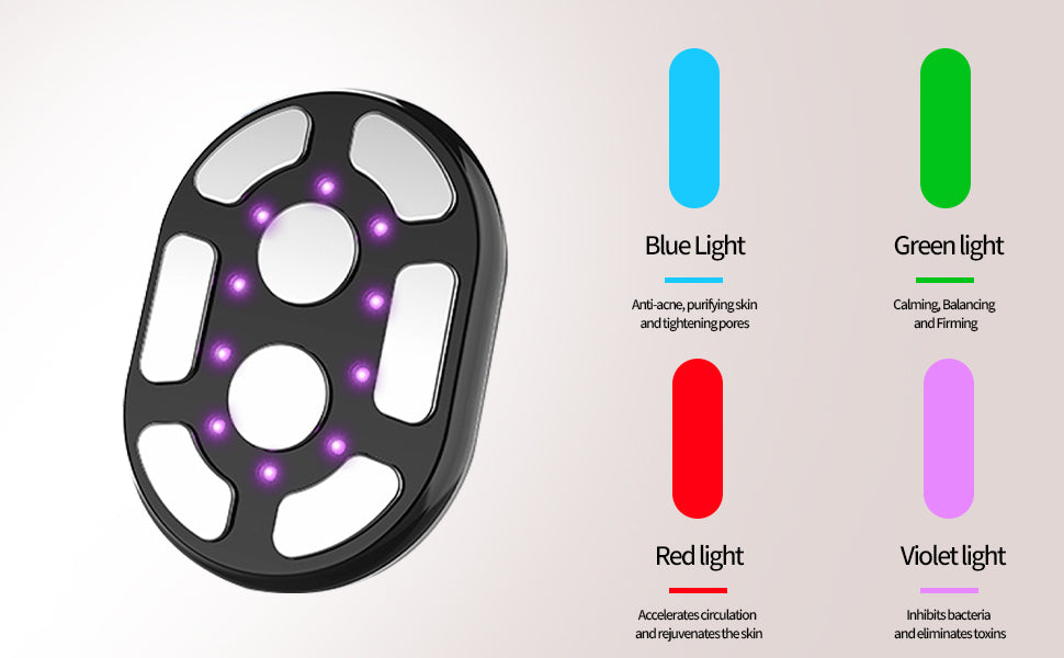 Kombiniert LED-Licht, EMS (elektrische Muskelstimulation), RF (Radiofrequenz) und Vibrationsmassage – zur ergänzenden Anwendung im Rahmen Ihrer Wellnessroutine. -